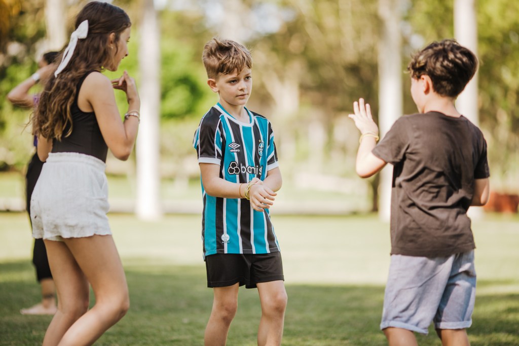 Os convidados, entre amigos e familiares, chegaram animados e logo se envolveram nas atividades. Uma banda animava o ambiente com músicas ao vivo, fazendo todos dançarem e cantarem juntos. As risadas eram contagiantes, especialmente durante o futebol pais contra os filhos, onde as crianças e adultos se divertiram!