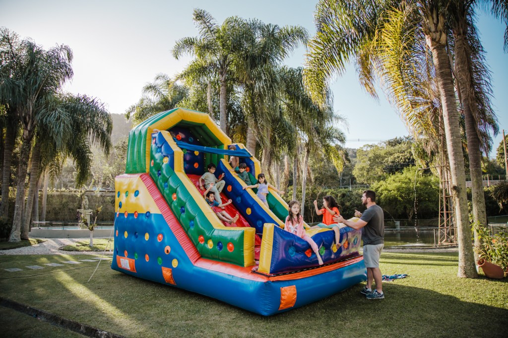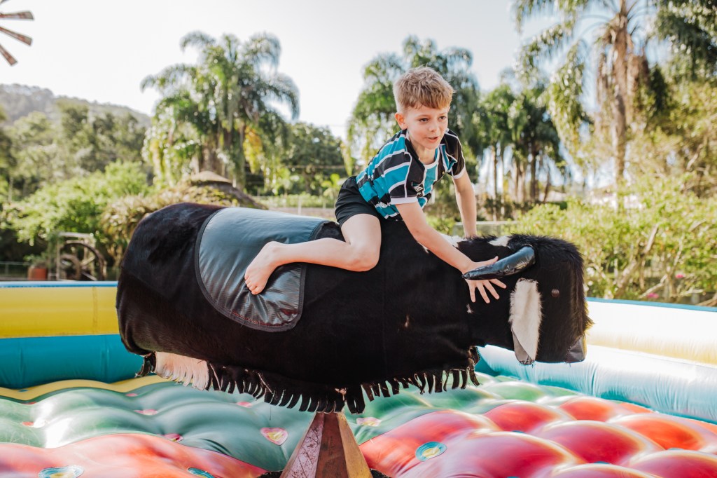 As brincadeiras eram variadas e cheias de emoção. O pula-pula estava sempre cheio, com crianças pulando e gritando de felicidade. O touro mecânico foi uma atração à parte, desafiando até os adultos a tentar se equilibrar. Para os que queriam um pouco de refresco, o banho de mangueira e a piscina proporcionavam momentos de pura diversão.