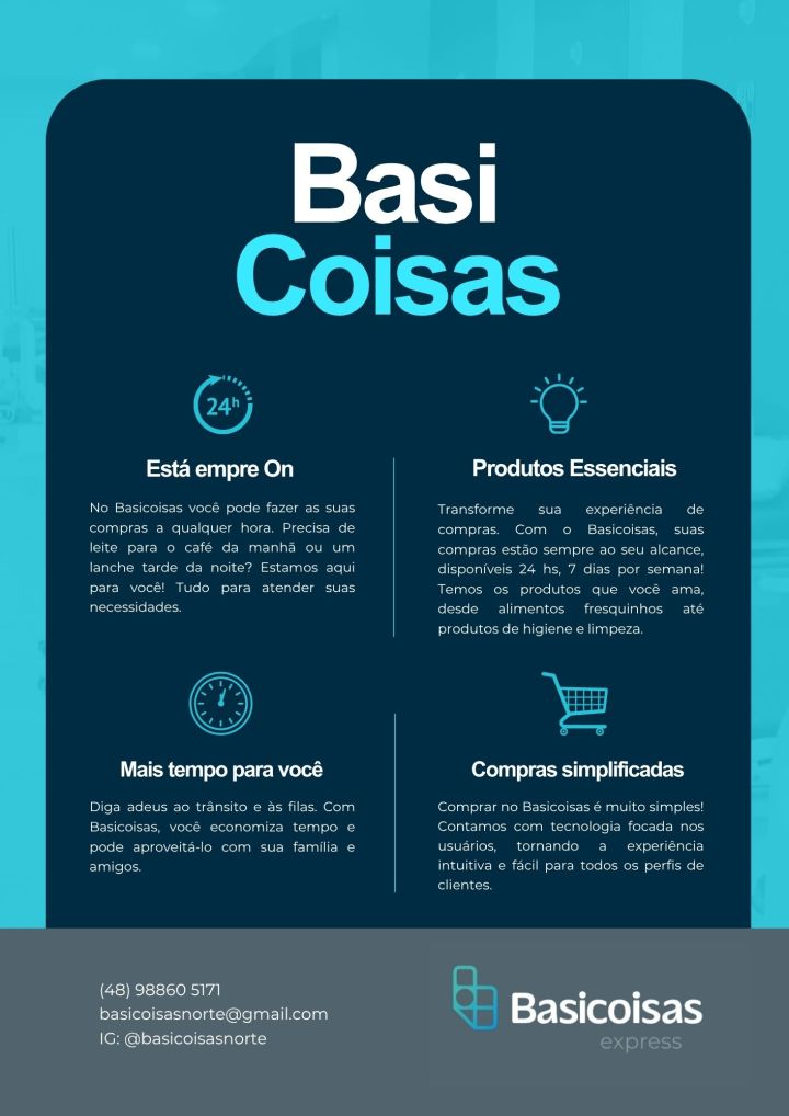 Imagine ter um mercado completo a poucos passos de casa, disponível 24 horas por dia. Com o Basicoisas Norte, isso é realidade! Nossos mercados autônomos dentro de condomínios em Florianópolis oferecem praticidade, segurança e conforto para o seu dia a dia. 🏡✨